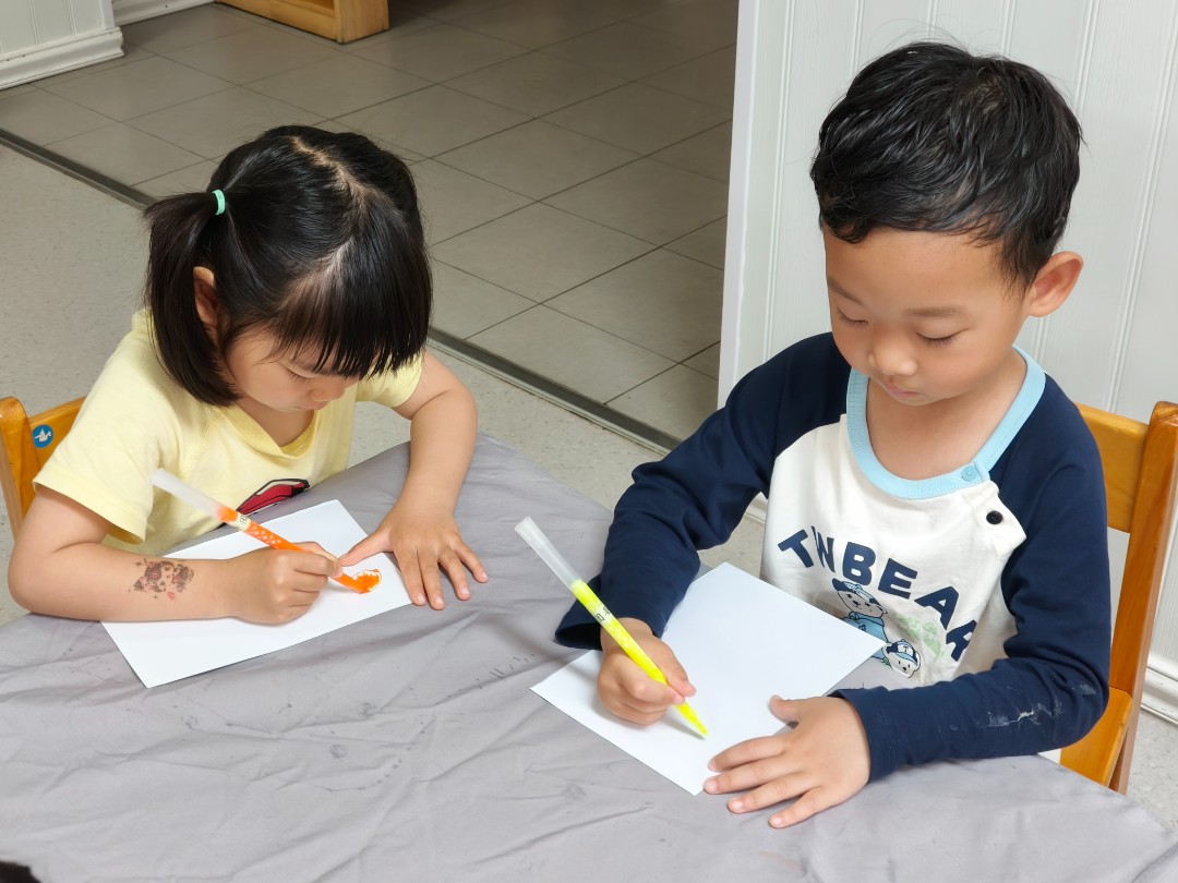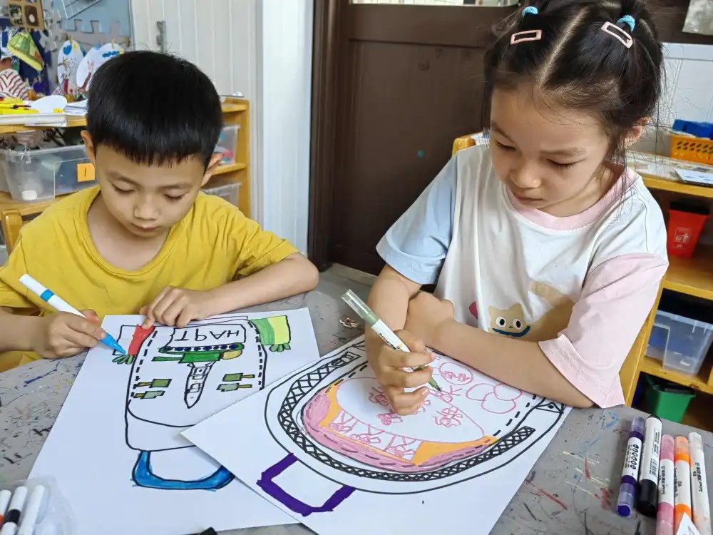 每天晨锻上楼回班后的自由活动时间是我们和朋友一起画日记的时间!看看我们友谊的作品吧!