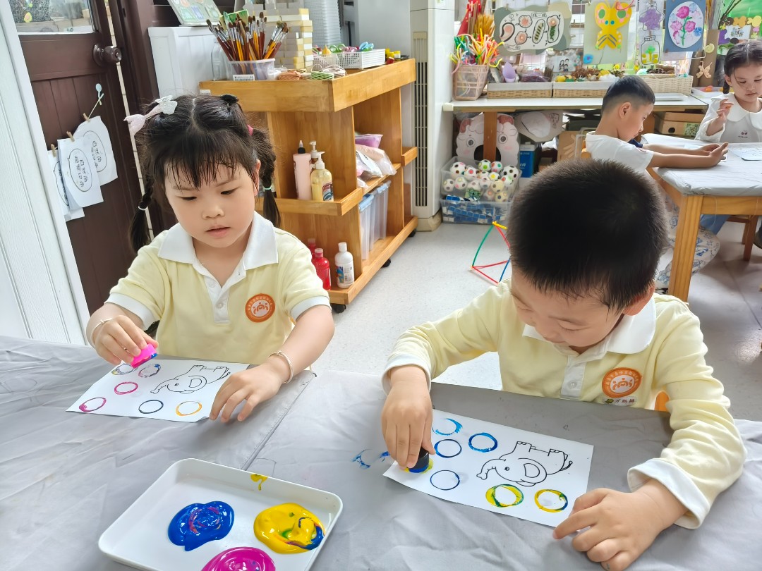 泡泡真好玩,除了吹泡泡还可以怎么表现出美丽的泡泡呢?小朋友们用瓶盖蘸取颜料,在纸上印压出各种颜色的泡泡,漂亮极了。