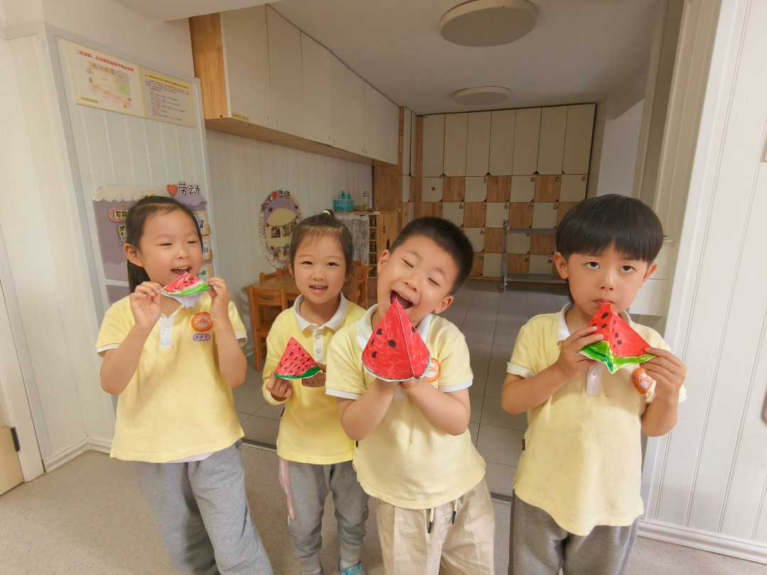 夏天到了,小朋友喜欢吃西瓜。小朋友们用能干的小手,画一片西瓜,剪下西瓜的轮廓,再将西瓜对折粘贴,甜甜的西瓜做好啦!通过画一画、剪一剪、贴一贴,小朋友的手部动作灵活,能够制作一个西瓜手工作品,感受动手制作活动的快乐!