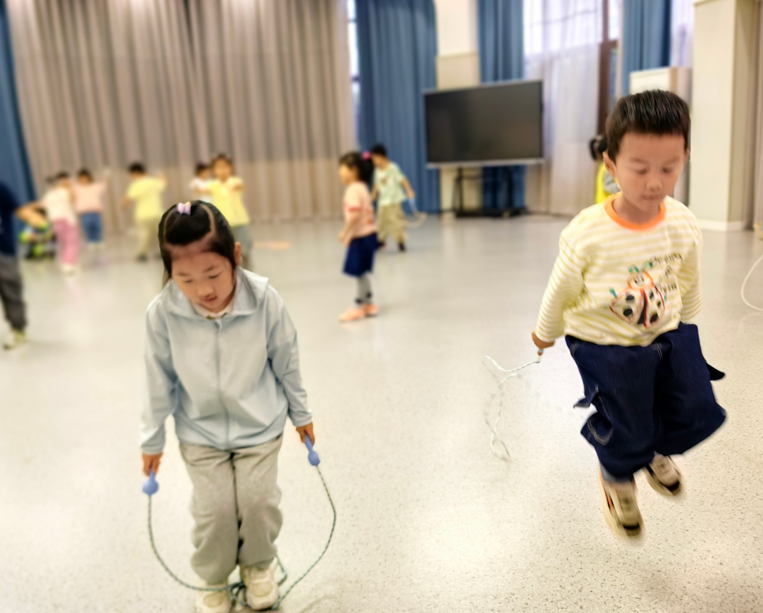 马上我们要上大班啦,现在我们开始学习跳绳了,快看我们努力、认真的状态吧。