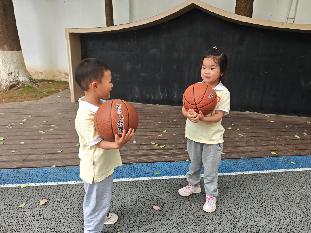 小一班的小朋友可喜欢篮球宝宝啦!瞧,他们正在专注地和篮球做游戏呢!有的用小手拍一拍,有的用小手滚一滚,还有的向上抛一抛。一边玩,大家还一边交流玩法,互相学习互相分享,真有趣!