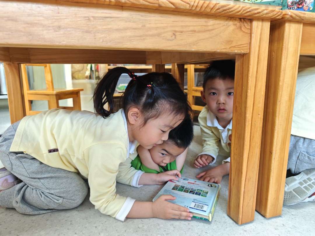 地震来了怎么办?小一班的孩子们在了解了地震中自我保护的正确方法之后,参与了幼儿园组织的防震演习。孩子们临危不乱,镇定地听从指挥,有序进行躲避、撤离等活动,在亲身体验中学习到自我保护的方法。